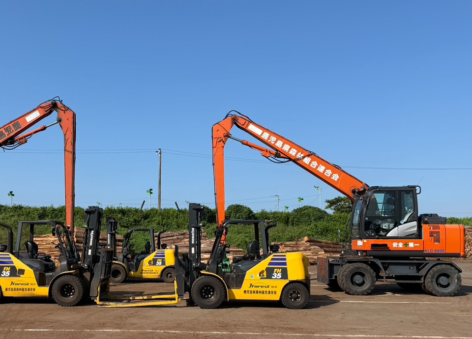 県内で生産された原木を効率的に集荷・販売するため、隼人と高山の2カ所に設置されています。